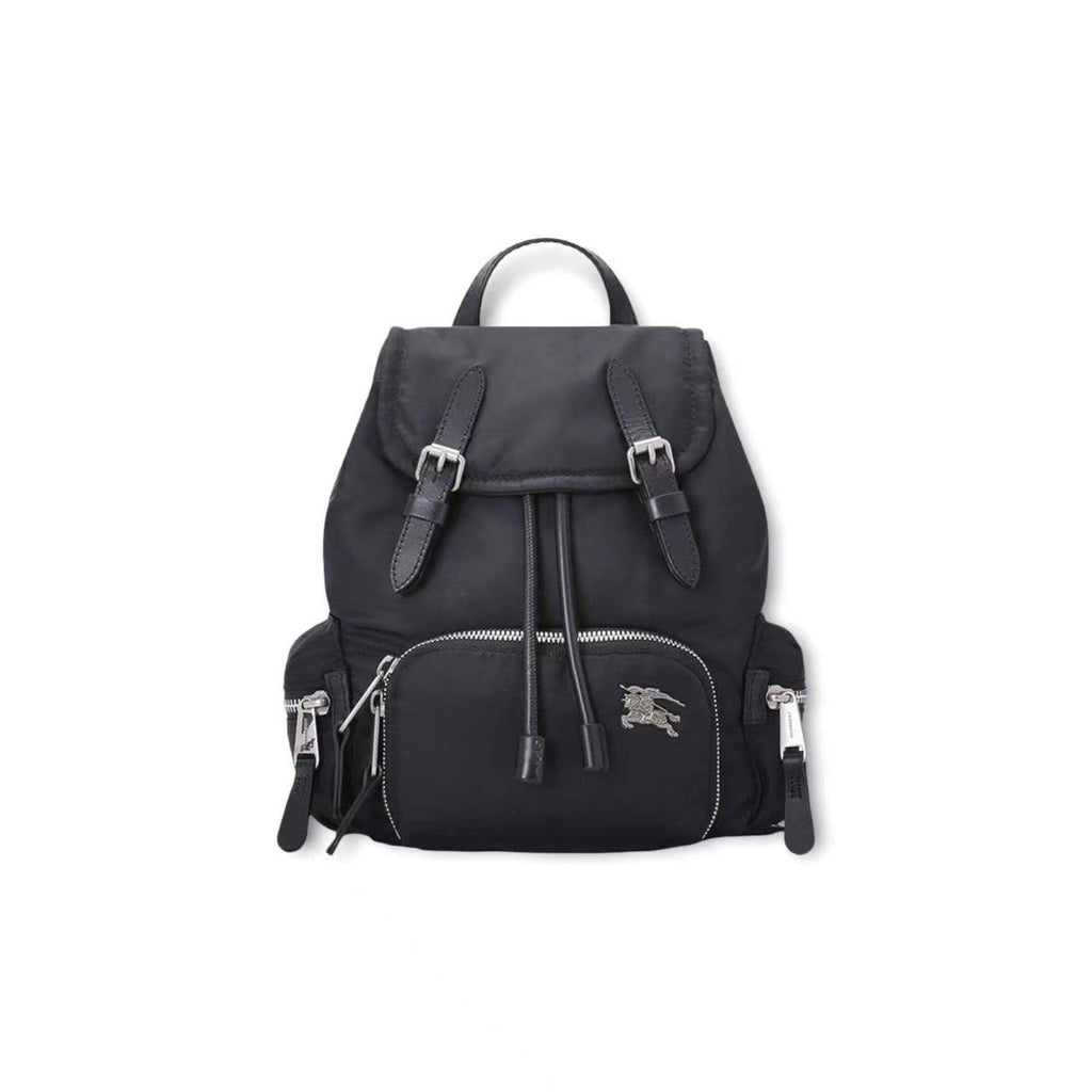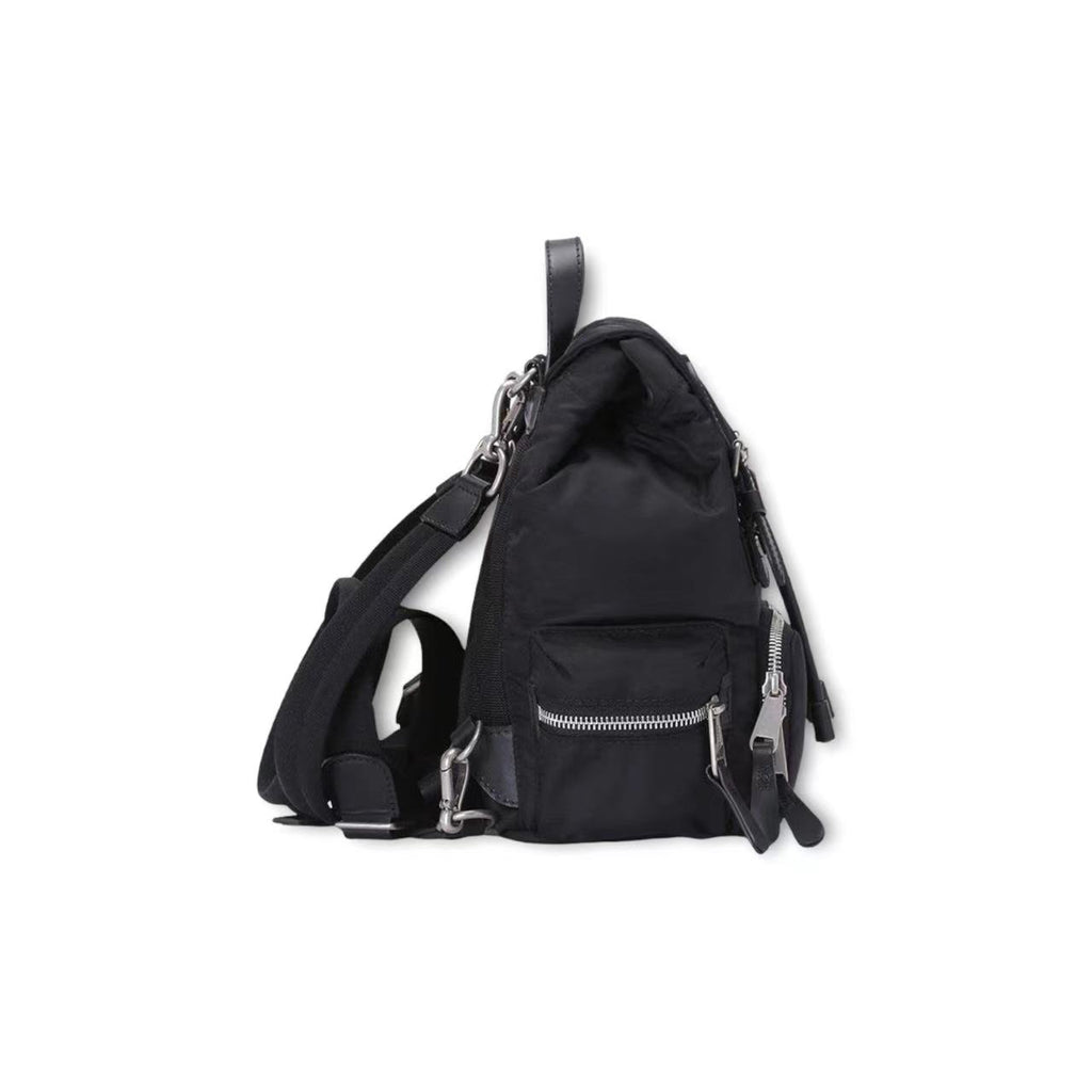 ミリタリーアーカイブバッグからインスピレーションを得た、時代を超越したレザートリムのバックパック。防水パフナイロンにメタルの騎馬騎士のモチーフを施し、斜め掛け用のストラップも付いています。